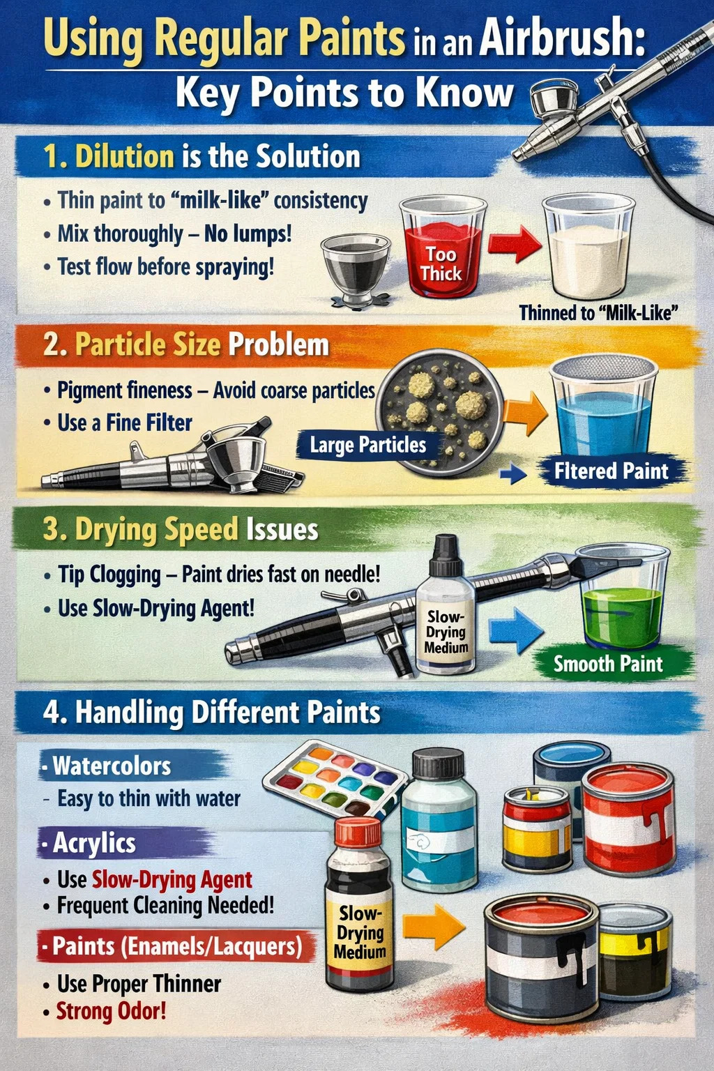 Jos haluat käyttää tavallisia maalejasi airbrushing , sinun on kiinnitettävä huomiota seuraaviin avainkohtiin: